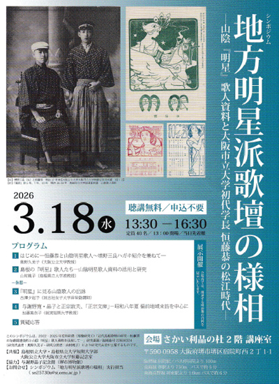 | 山陰「明星」歌人資料と大阪市立大学初代学長 恒藤恭の松江時代を4人の講師により解説いただきます。